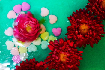 ÀöÌÌ´ï¤ËÂ礭¤Ê¥°¥ê¡¼¥ó¤Î²èÍÑ»æ¤òÉߤ­µÍ¤á¡¢¤½¤Î¾å¤Ë¥Ï¡¼¥È·¿¤ÎÀС©¤Î¤è¤¦¤Ê¤â¤Î¡Ê100¶Ñ¤Ç¹ØÆþ¡Ë¤ò¥Ñ¥é¥Ñ¥é¤Èʤ٤ޤ·¤¿¡£